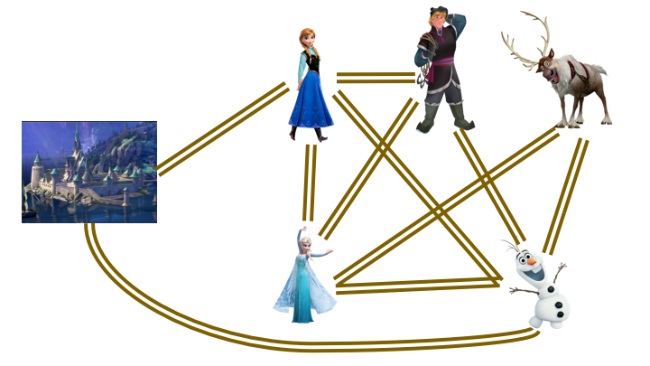 Find a path that starts from the castle and visits each character once, but cannot use any road more than once.