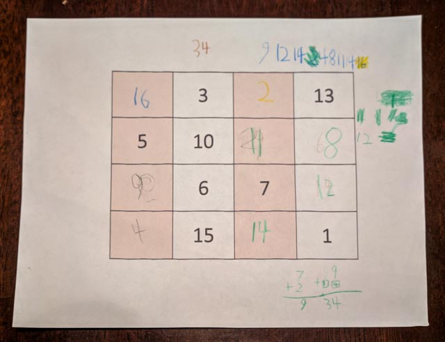 We were able to identify all the types of triangles, but we didn’t find a successful strategy for counting all 35 triangles, despite several persistent efforts from the girls.