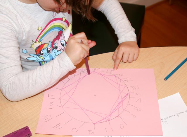 If two numbers, n and k are relatively prime, we will touch every number in the modulo number ring for n going by multiples of k. Dorina picked 25 and 6, Anya picked 12 and 5, Charlotte picked 12 and 3 (not relatively prime, so doesn’t touch every number), and Madelyn picked a number too big to finish.